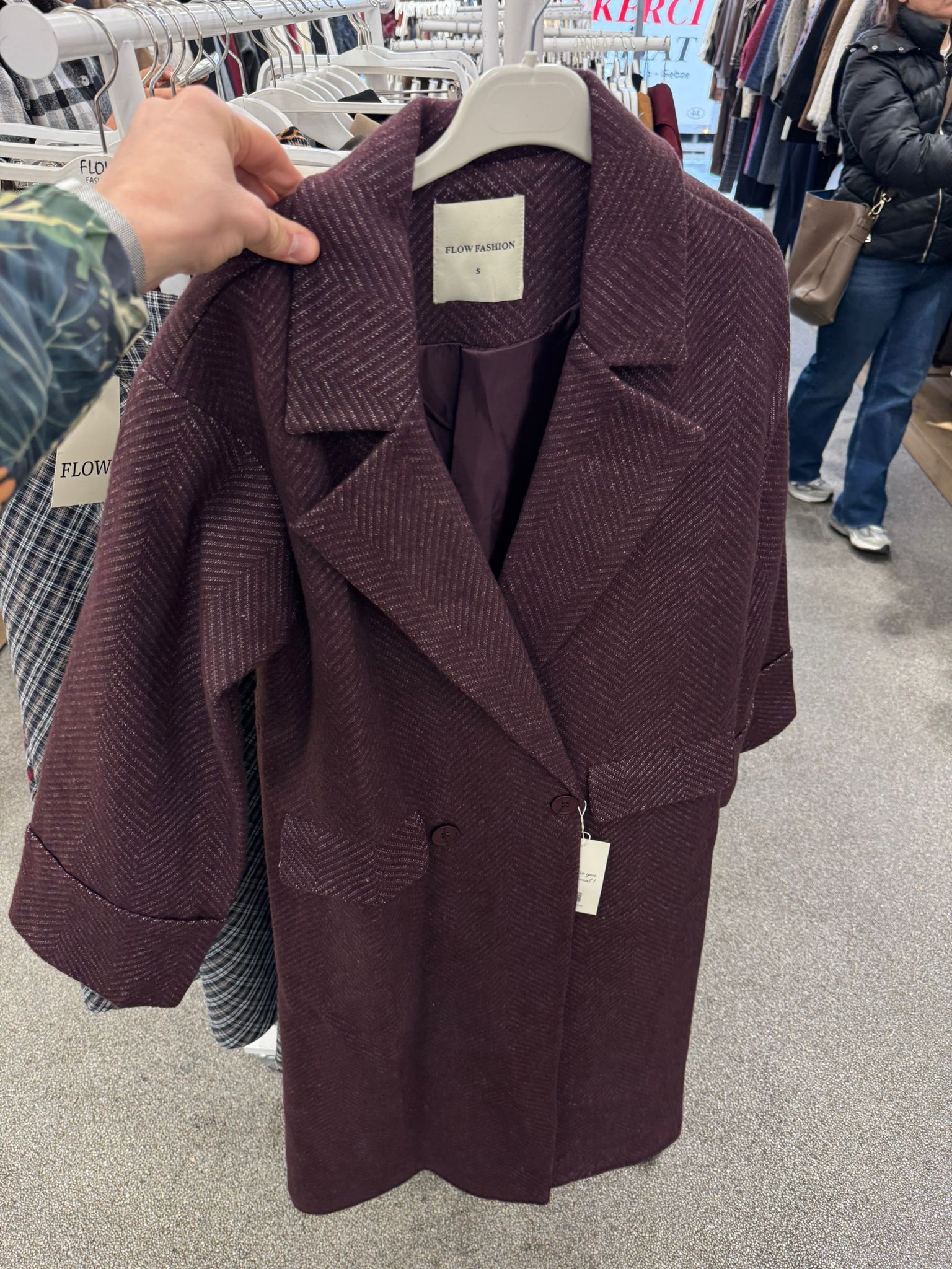A refined outerwear essential crafted for timeless elegance. This long herringbone coat features a structured double-breasted silhouette in a rich burgundy tone, offering warmth, sophistication, and effortless polish. Designed to elevate both casual and tailored looks, it’s the perfect statement coat for the cooler seasons.