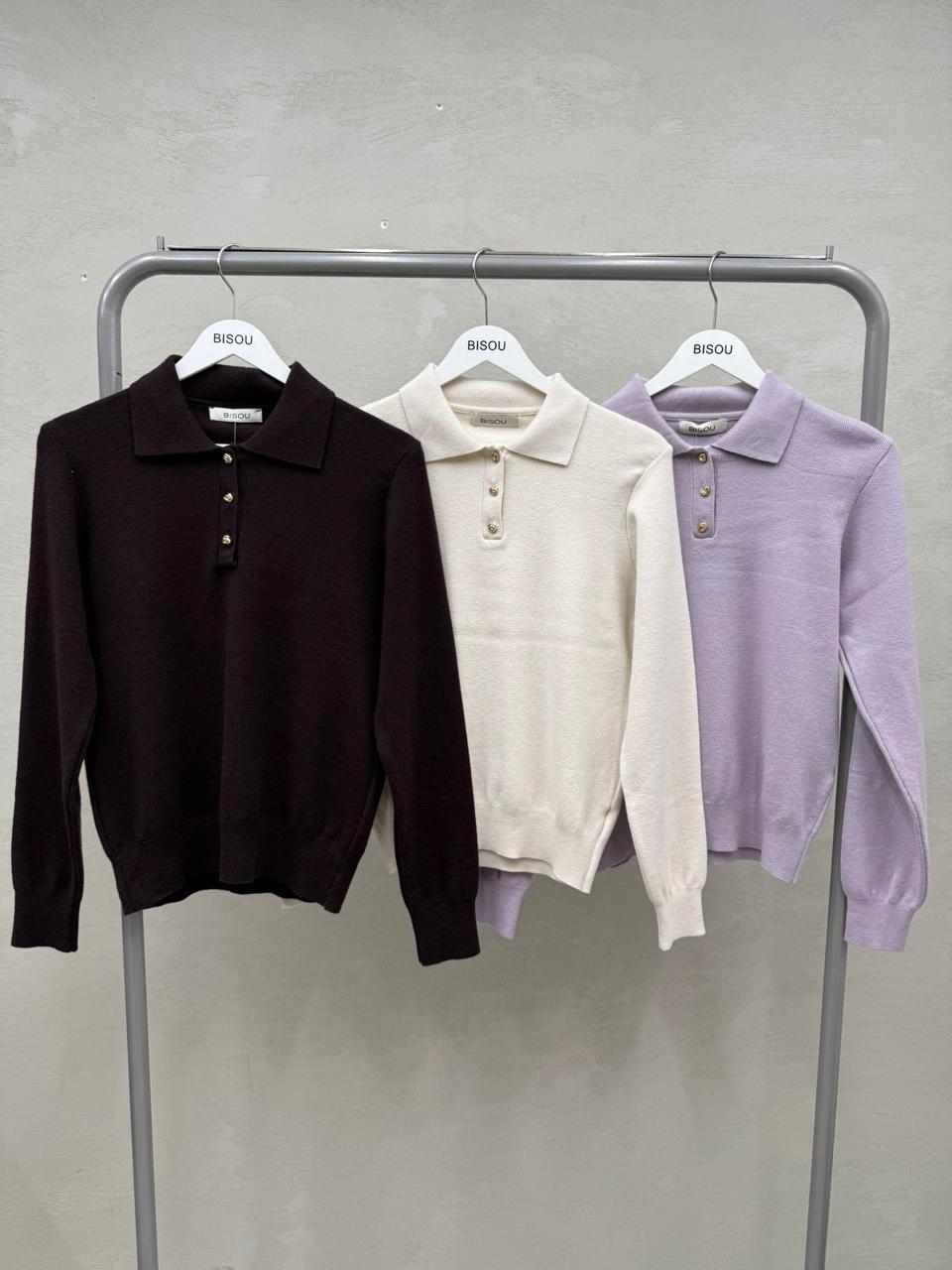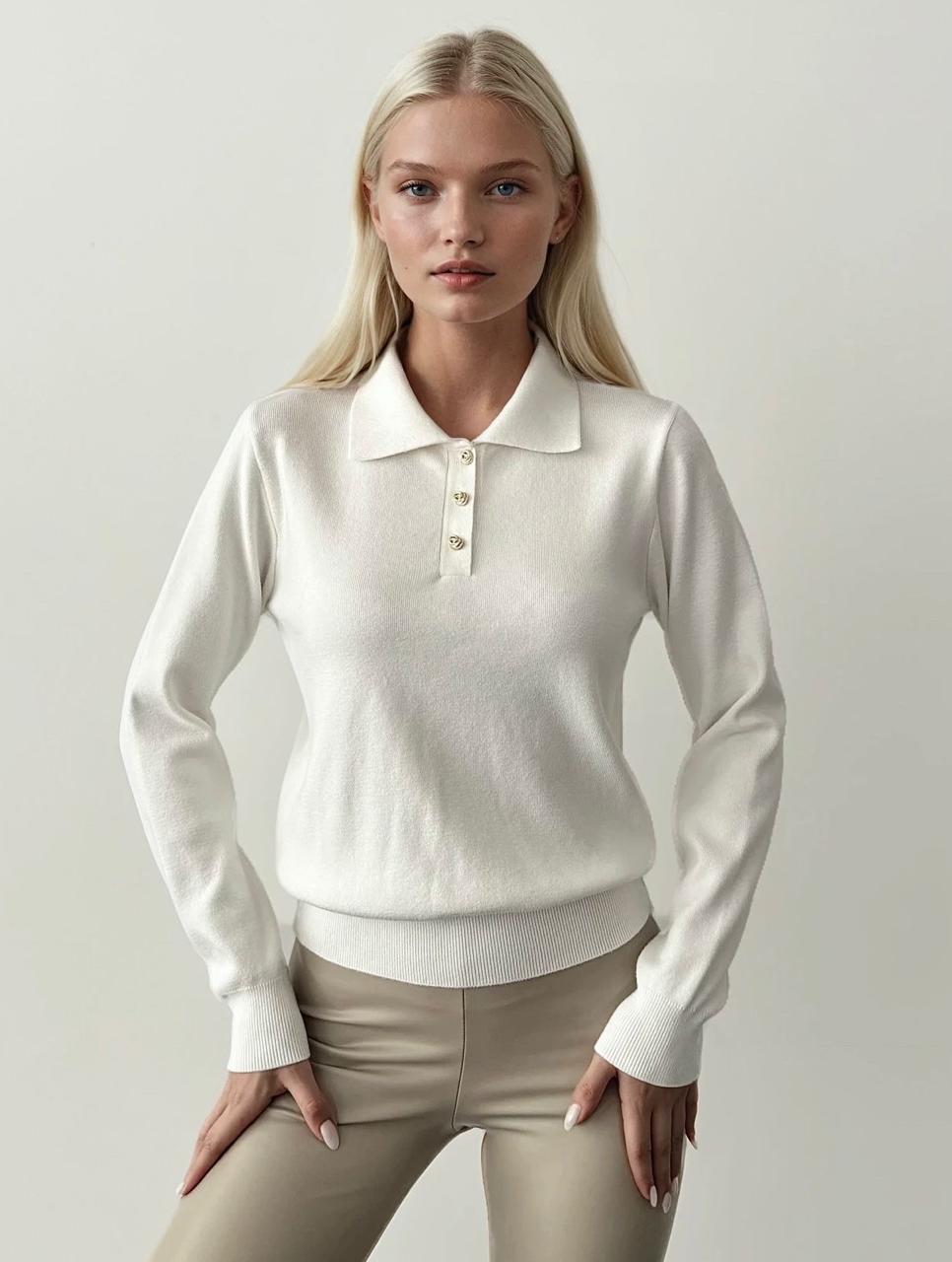 A refined knit top that blends sophistication with everyday comfort. Designed with a structured collar and elegant button placket, this piece elevates casual looks while remaining effortlessly wearable.
