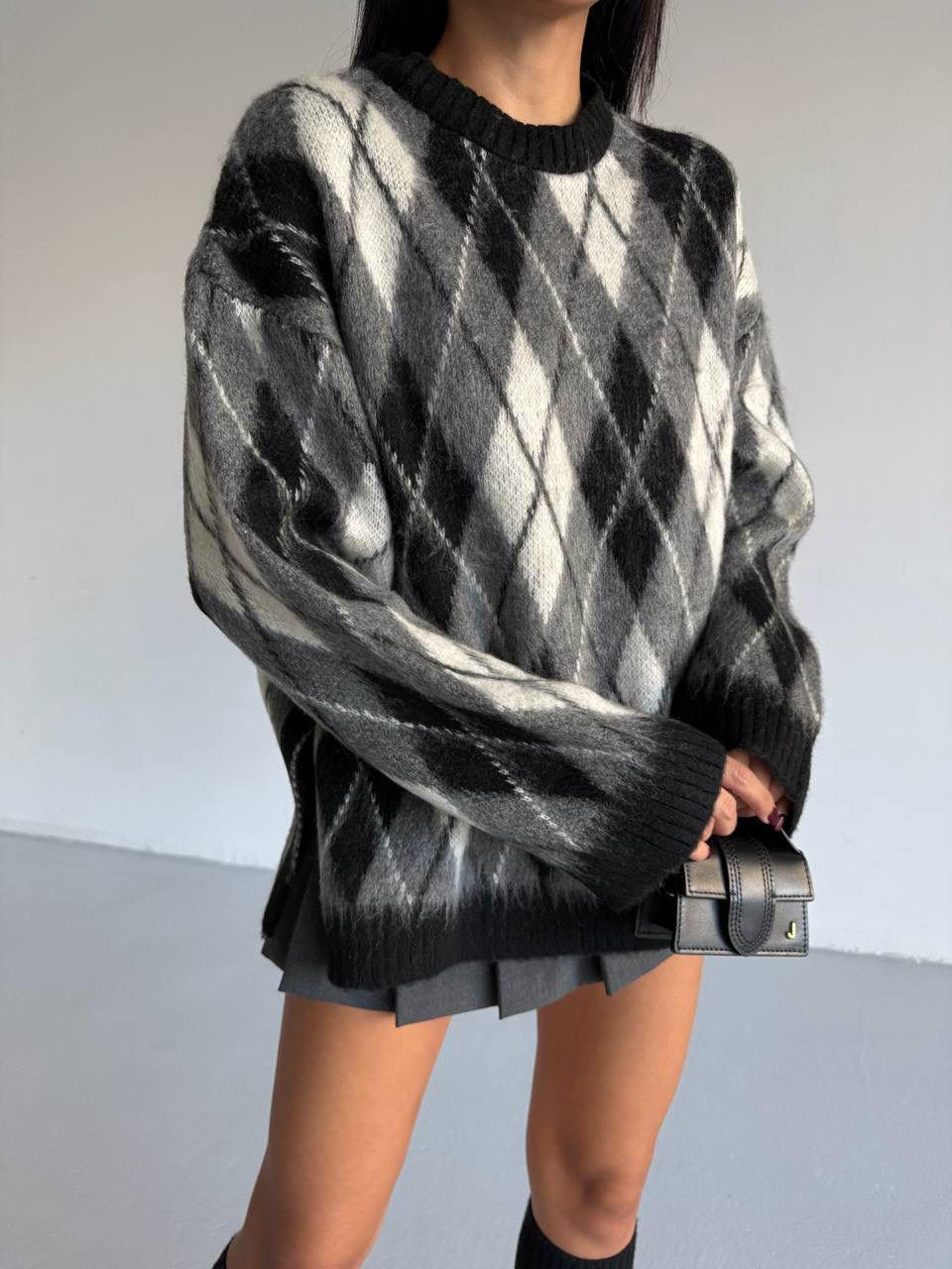 Wrap yourself in effortless comfort with this ultra-soft oversized sweater, designed with a timeless diamond-knit pattern that elevates any casual or chic ensemble.