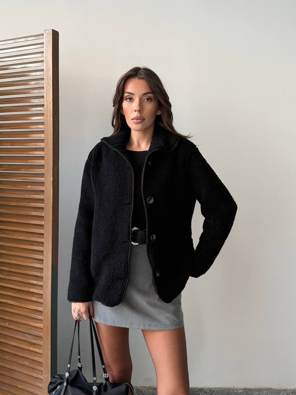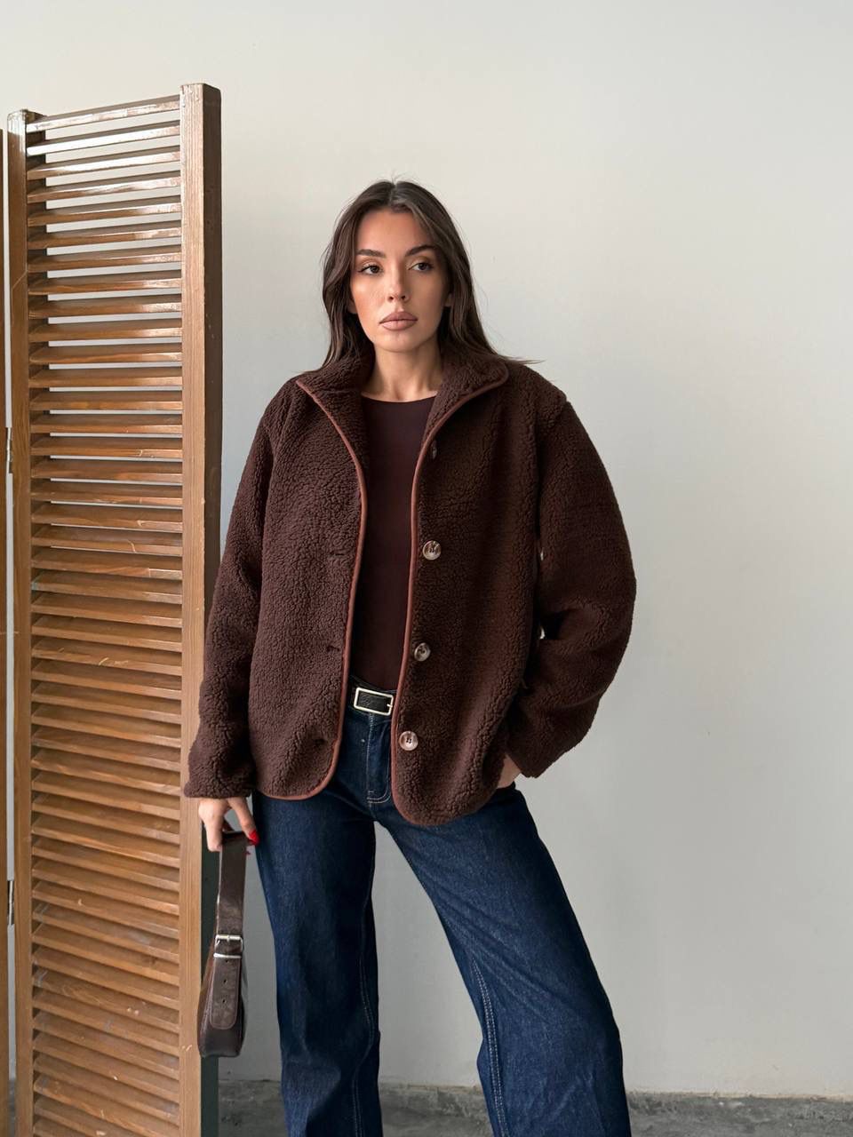 A warm, textured outerwear piece crafted from soft teddy fleece. Featuring a relaxed fit and contrasting button details, this jacket is an essential layer for a chic and cozy seasonal look.