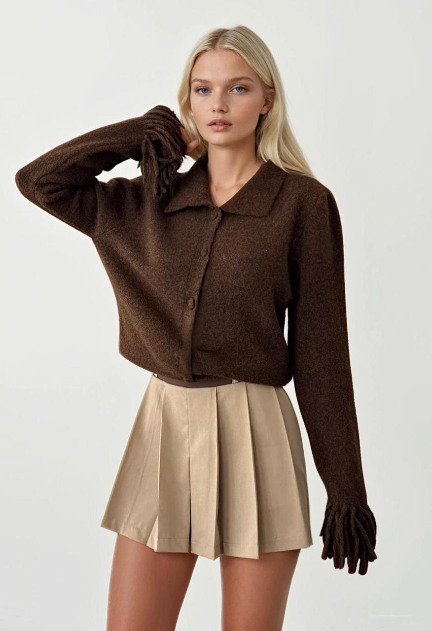A soft, statement-knit cardigan designed to bring effortless elegance to everyday outfits. Its relaxed silhouette pairs beautifully with tailored or casual pieces, while the fringe detailing adds a unique, fashion-forward touch.