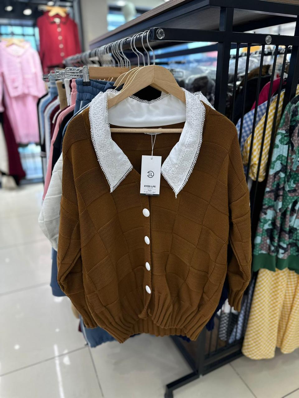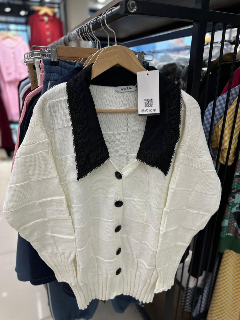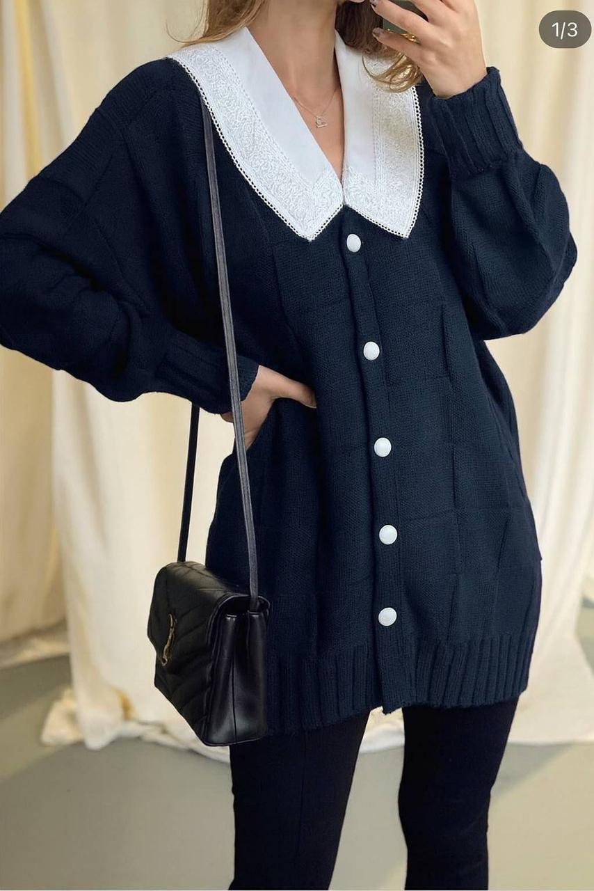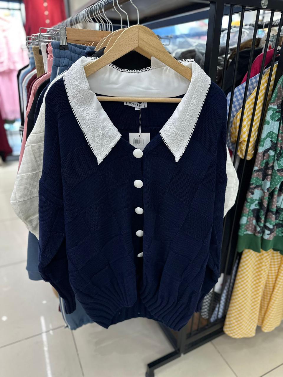 Elevate your everyday style with this elegant knit cardigan featuring a beautifully detailed lace collar and classic button-up front. Designed with a textured knit pattern and a relaxed silhouette, it offers both comfort and sophistication—perfect for pairing with skirts, denim, or tailored trousers.