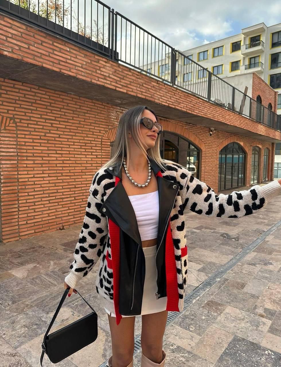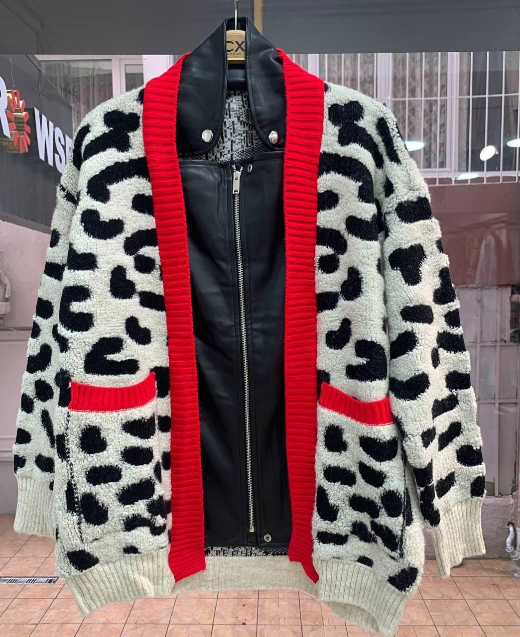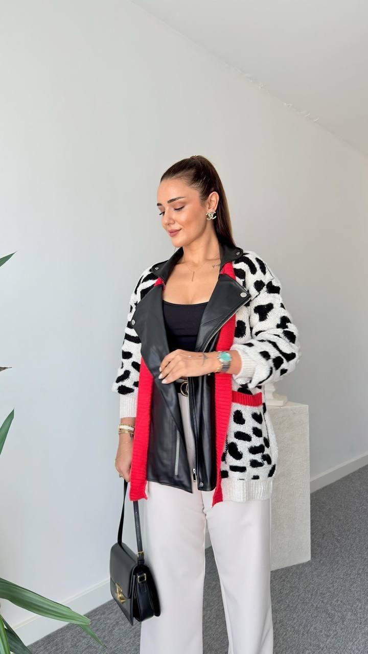 Bold, modern, and irresistibly stylish — this statement jacket blends a playful leopard-knit pattern with sleek faux-leather details for the ultimate street-chic look. Designed with an open-front style and vibrant red accents, it’s the perfect layer for fashion-forward women who love standout pieces that elevate any outfit effortlessly.