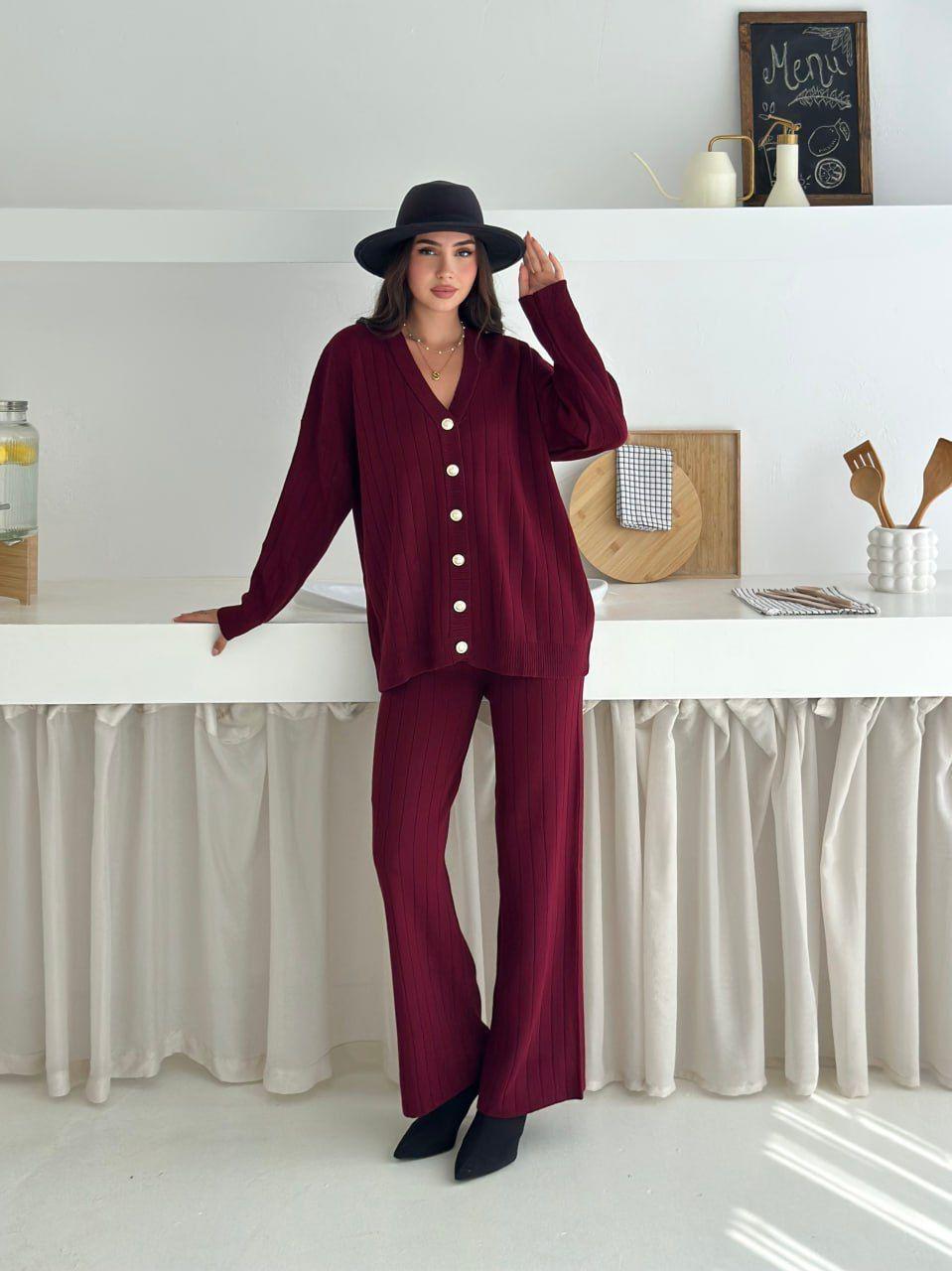 A chic, coordinated lounge set designed for effortless style and all-day comfort. Featuring a ribbed knit texture and elegant button-front top, this matching set delivers a polished yet relaxed look—perfect for everyday wear, travel, or cozy outings.