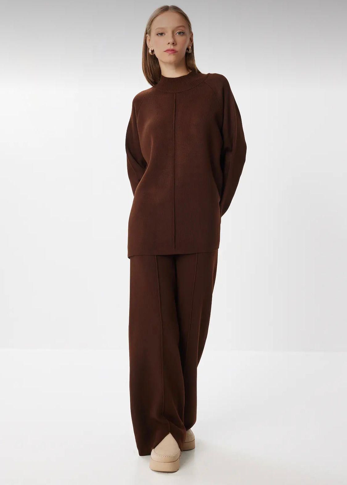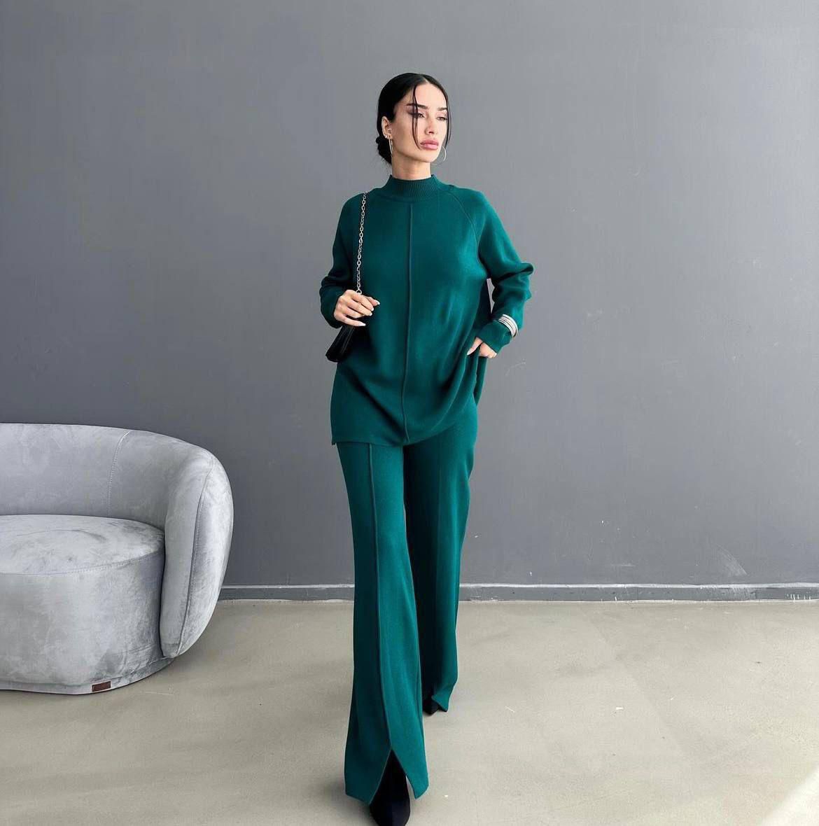 The Sculpt Knit Set is a masterclass in minimal sophistication. Designed with clean lines and structured seam detailing, the long tunic-style top flows effortlessly into matching wide-leg trousers, creating a balanced silhouette that feels both modern and timeless.