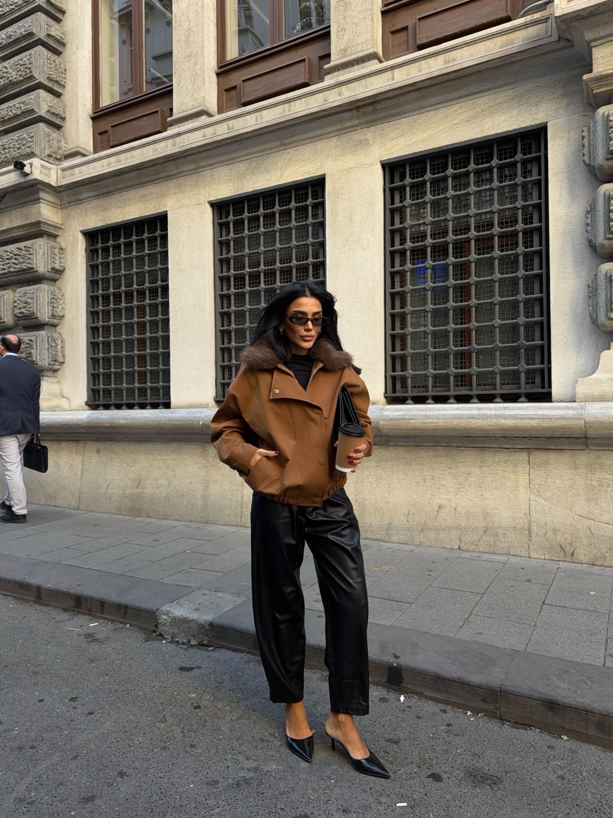 Style Tip: Combine with leather trousers and ankle boots for a city-ready ensemble, or pair with denim for a more casual, off-duty look.